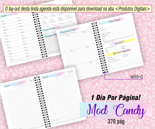 Miolo da agenda padrão Mod. Candy - Não alterável neste produto.